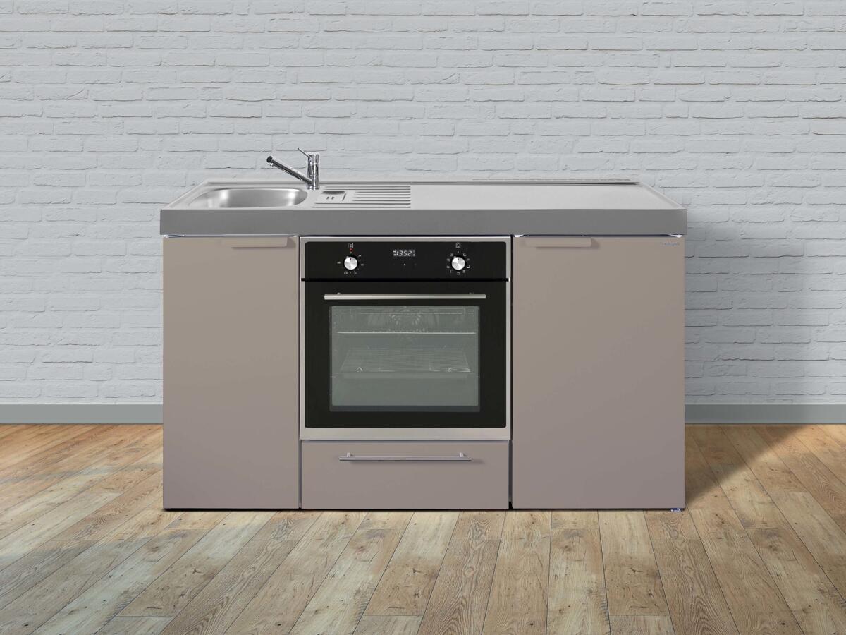 Stengel MKB 150 Miniküche, 150cm breit, Elektrokochfeld, Kühlschrank mit Gefrierfach, mit Backofen, Becken links, sand matt (11150 006021 11)