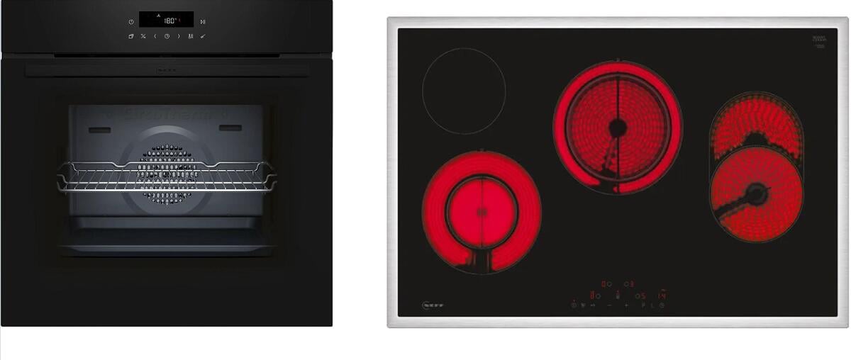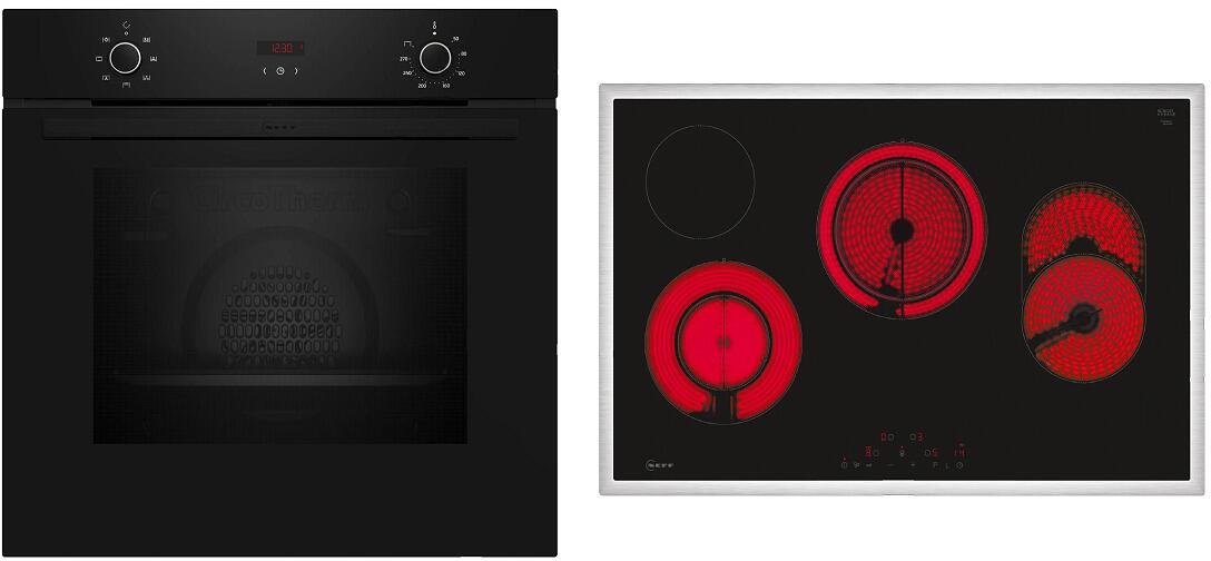 Neff BX18B EEK:A Backofen Set (B1DCA0AK0 +T18SDH9L0) mit Elektrokochfeld, 60 cm breit, Kochfeld 80 cm breit, 71L, Kindersicherung, Grillfunktion, schw
