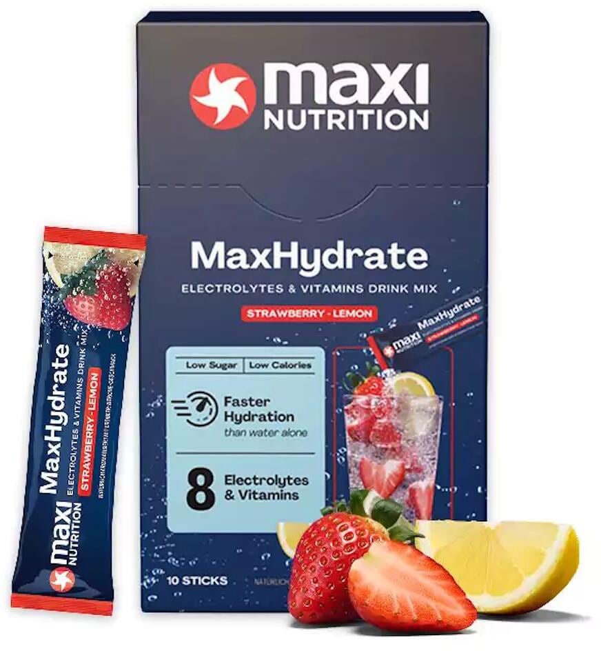 MaxiNutrition MaxHydrate Classic Elektrolyt Getränk, 10 x 16 g Sticks, Strawberry-Lemon
