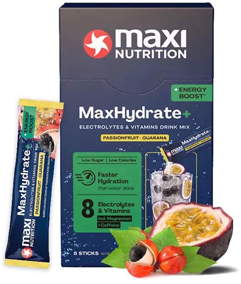 MaxiNutrition MaxHydrate+ Energy Boost Elektrolyt Getränk, 8 x 16 g Sticks, Passionfruit Guarana