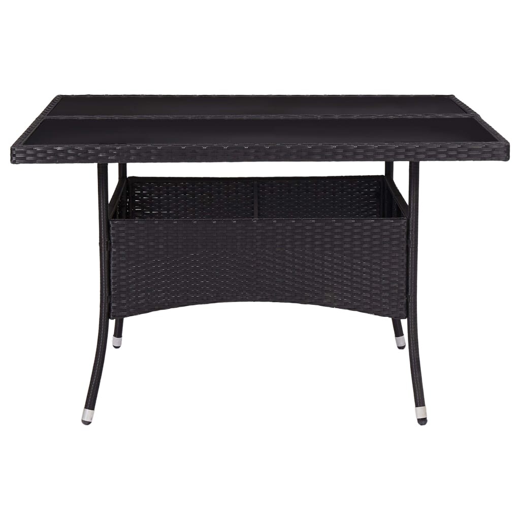 vidaXL Garten-Esstisch Schwarz Poly Rattan und Glas