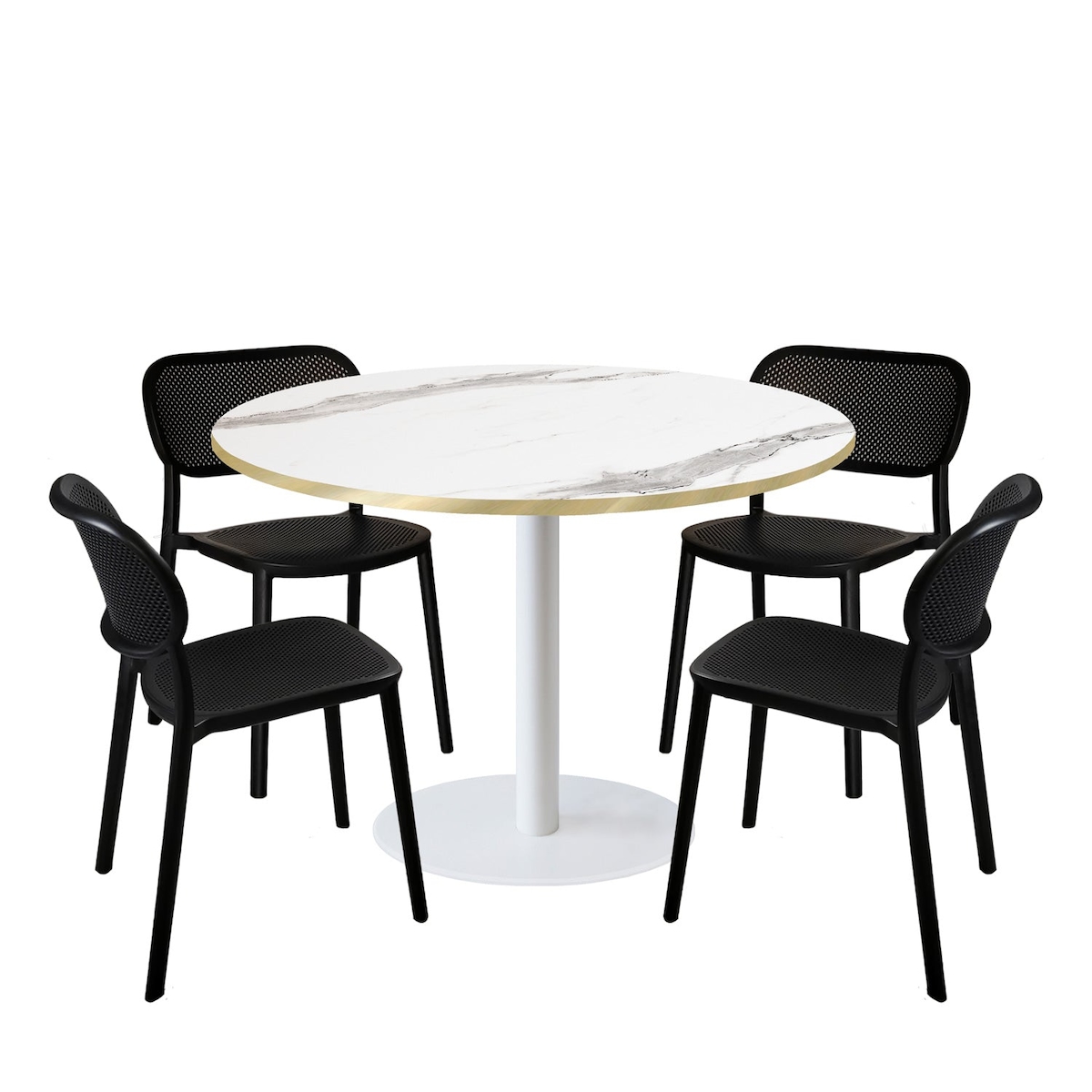 Restootab Esstisch-Set Rome weiß Ø120cm und 4 Stühle - Modell weißer Marmor mit messingfarbenen Kanten