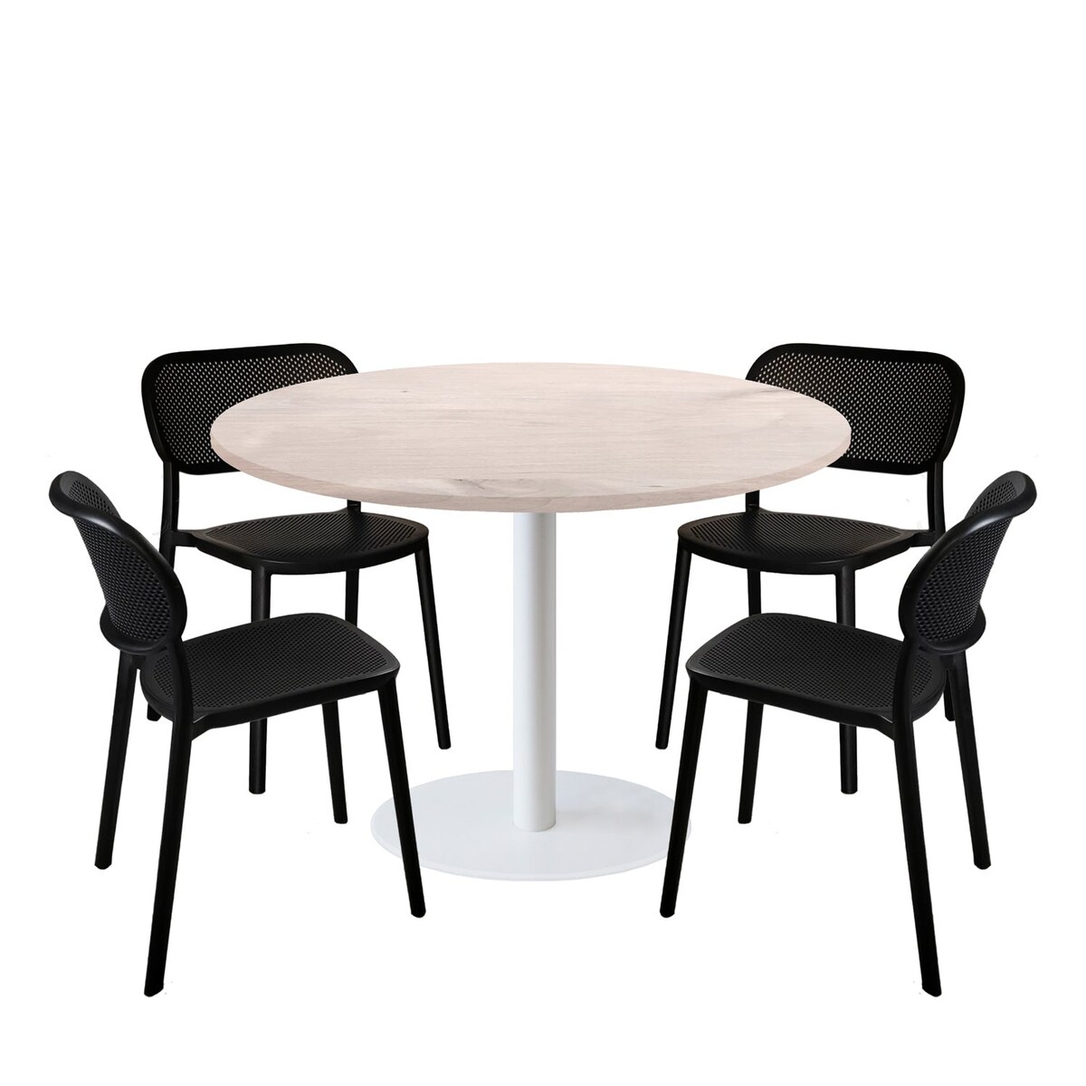 Restootab Esstisch-Set Rome weiß Ø120cm und 4 Stühle - Modell Eiche Delano
