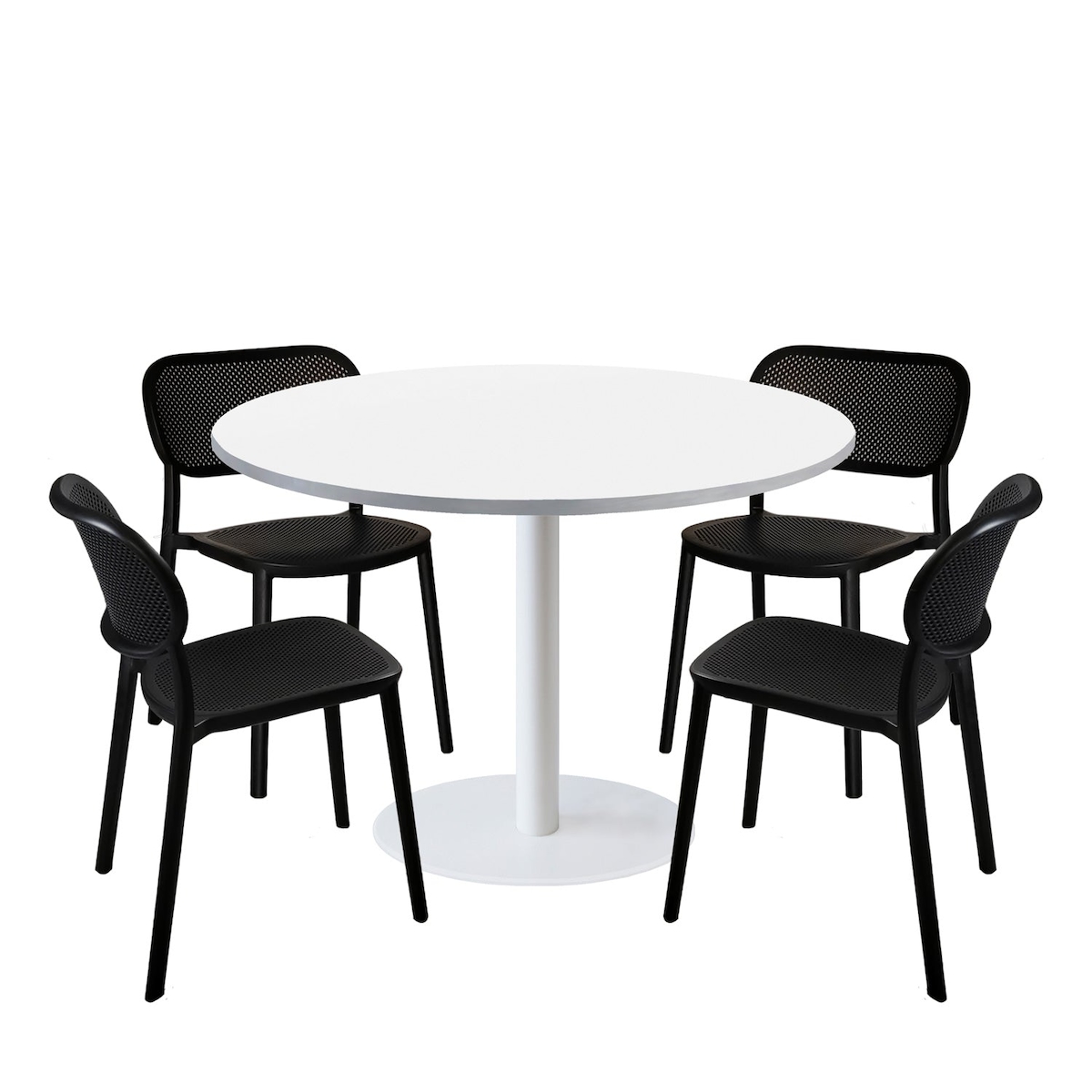Restootab Esstisch-Set Rome weiß Ø120cm und 4 Stühle - Modell Naturbeton