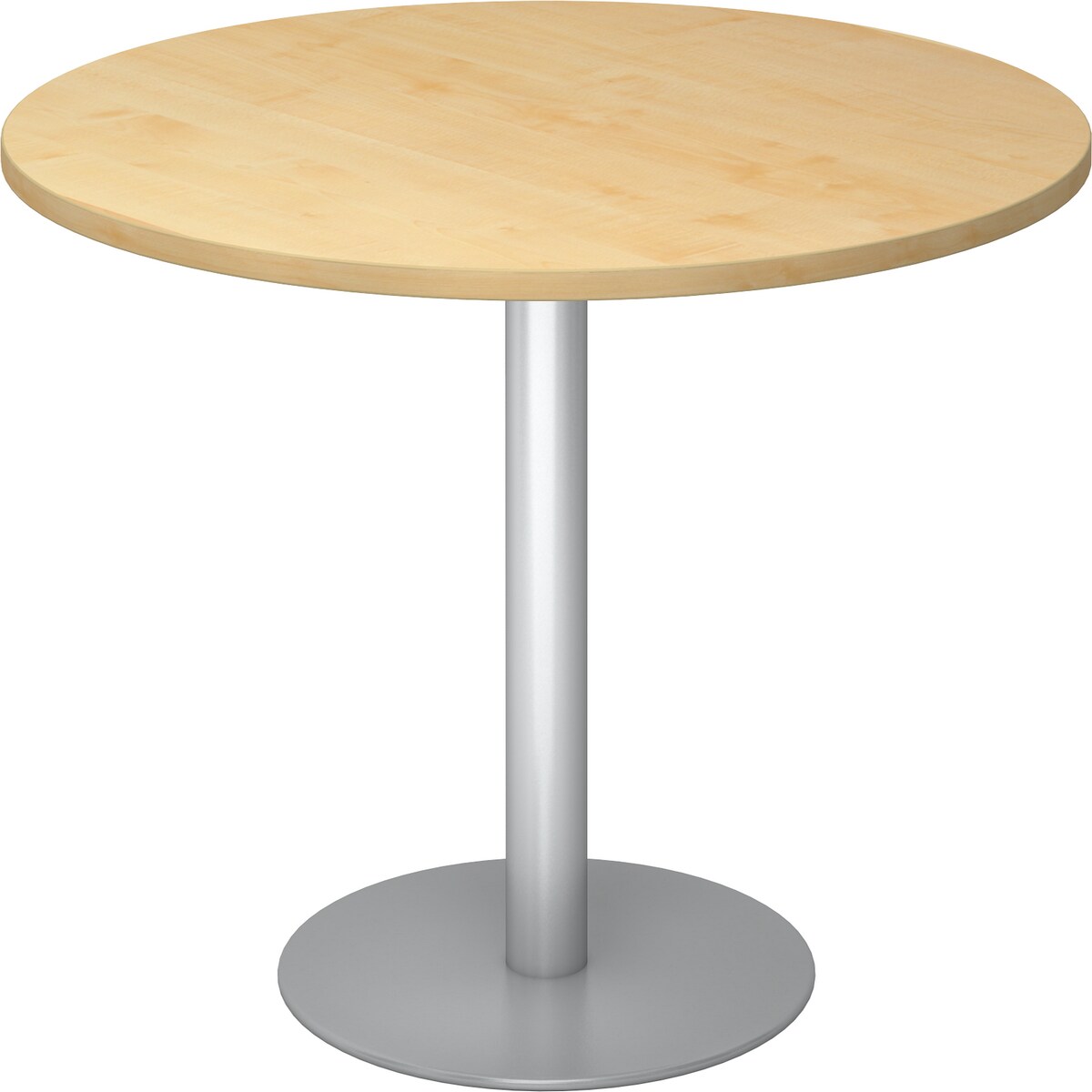 bümö Besprechungstisch, Esstisch klein, Tisch rund 100 cm - kleiner Esstisch Ahorn, Rundtisch Esstisch 2 Personen mit Holz-Platte, Säule aus Metall