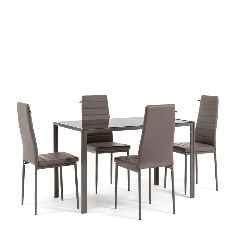 RATTATAN Esszimmer-Set mit 4 Stühlen und rechteckigem Tisch, modernes Design, Tischplatte aus gehärtetem Glas, Stühle aus Kunstleder – Ettore+Lidia/
