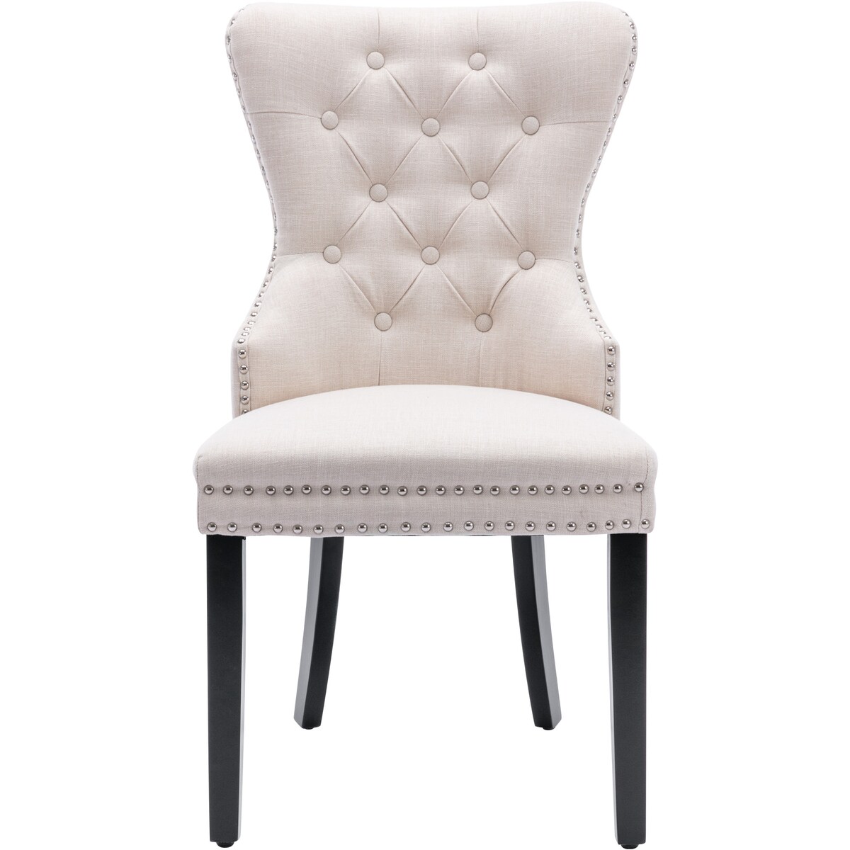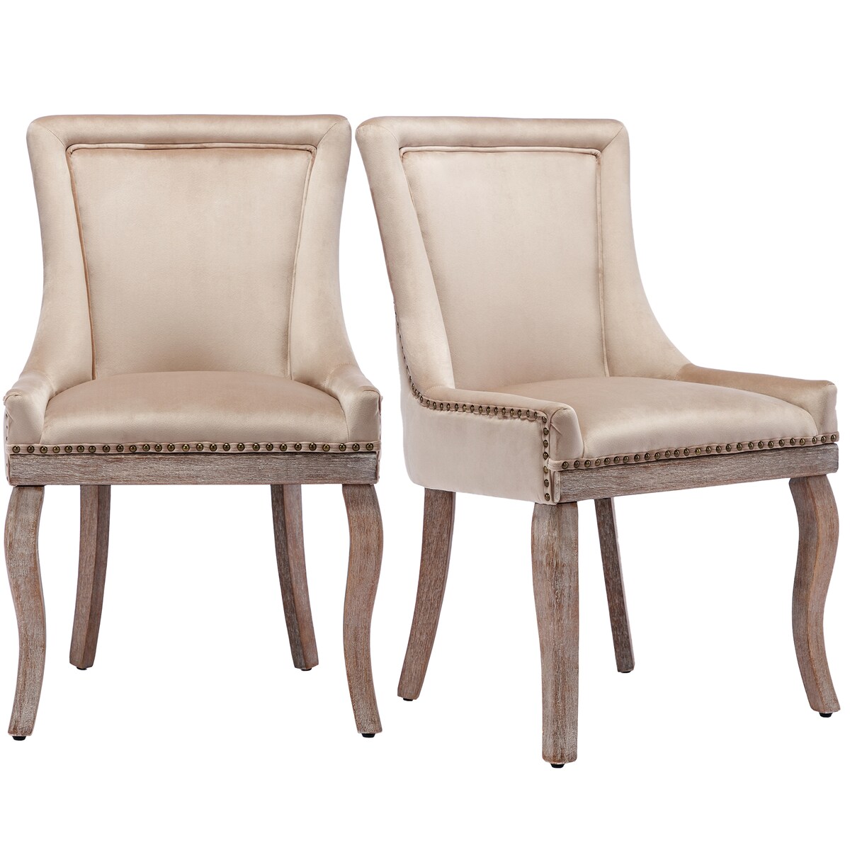 OKWISH Esszimmerstuhl Samt Beige 91x61x55 cm Polsterstuhl mit dekorativen Ziernägeln Massivholz 4 Fuß Gestell verstellbare Bodenschoner