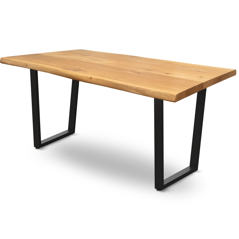 Esszimmertisch Schweizer Kante / gerade Ecken massiv & geölt Eiche 160x85 schwarz U-Gestell Lotte