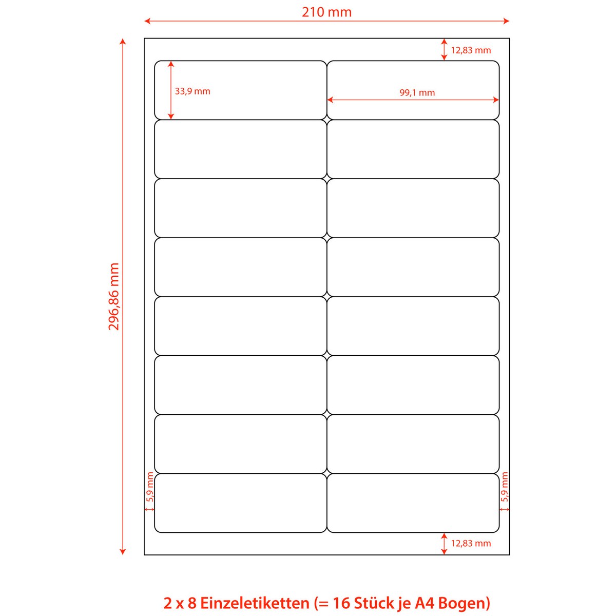VEPATIM 1600x Etiketten Labels selbstklebend weiß 99.1 x 33.9mm auf DIN A4
