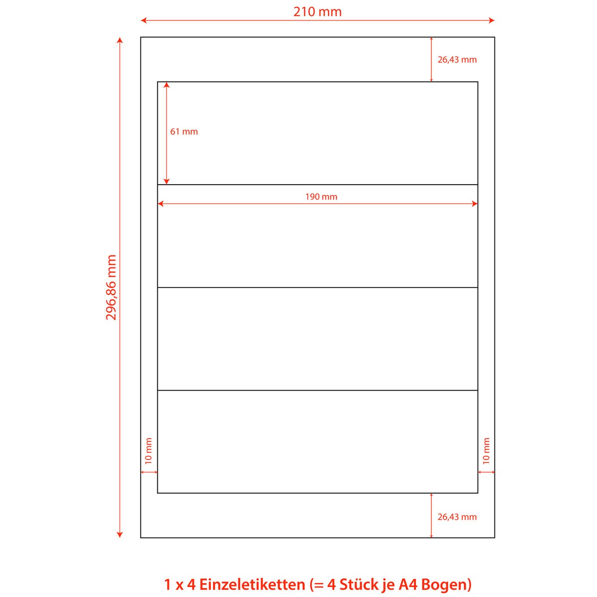 Etiketten selbstklebend, 100 Blatt, weiß, bedruckbar, Universal Klebeetiketten, DIN A4 (192x61mm)