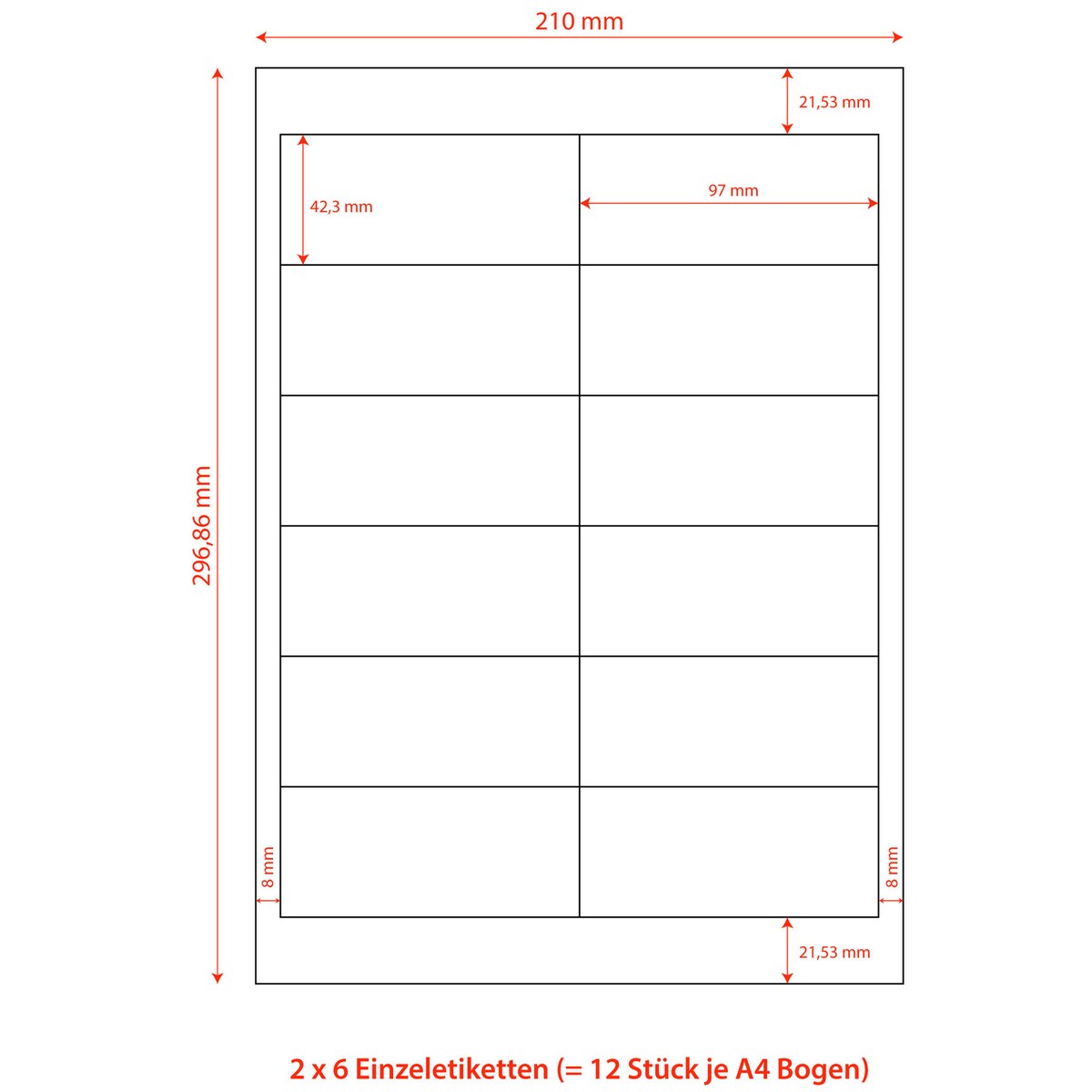 VEPATIM 1200x Etiketten Labels selbstklebend weiß 97 x 42.3mm auf DIN A4