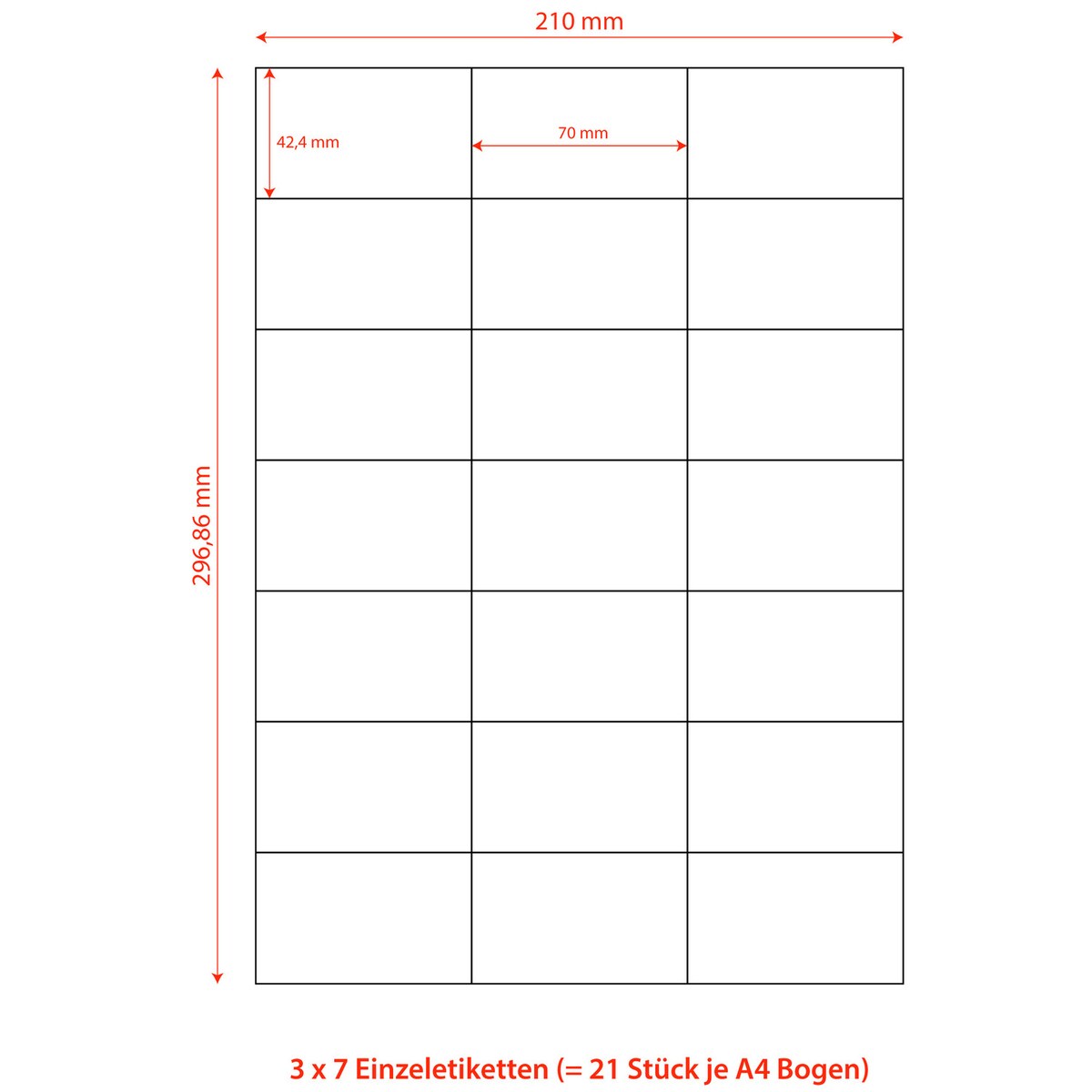 VEPATIM 2100x Etiketten Labels selbstklebend weiß 70 x 42.3mm auf DIN A4
