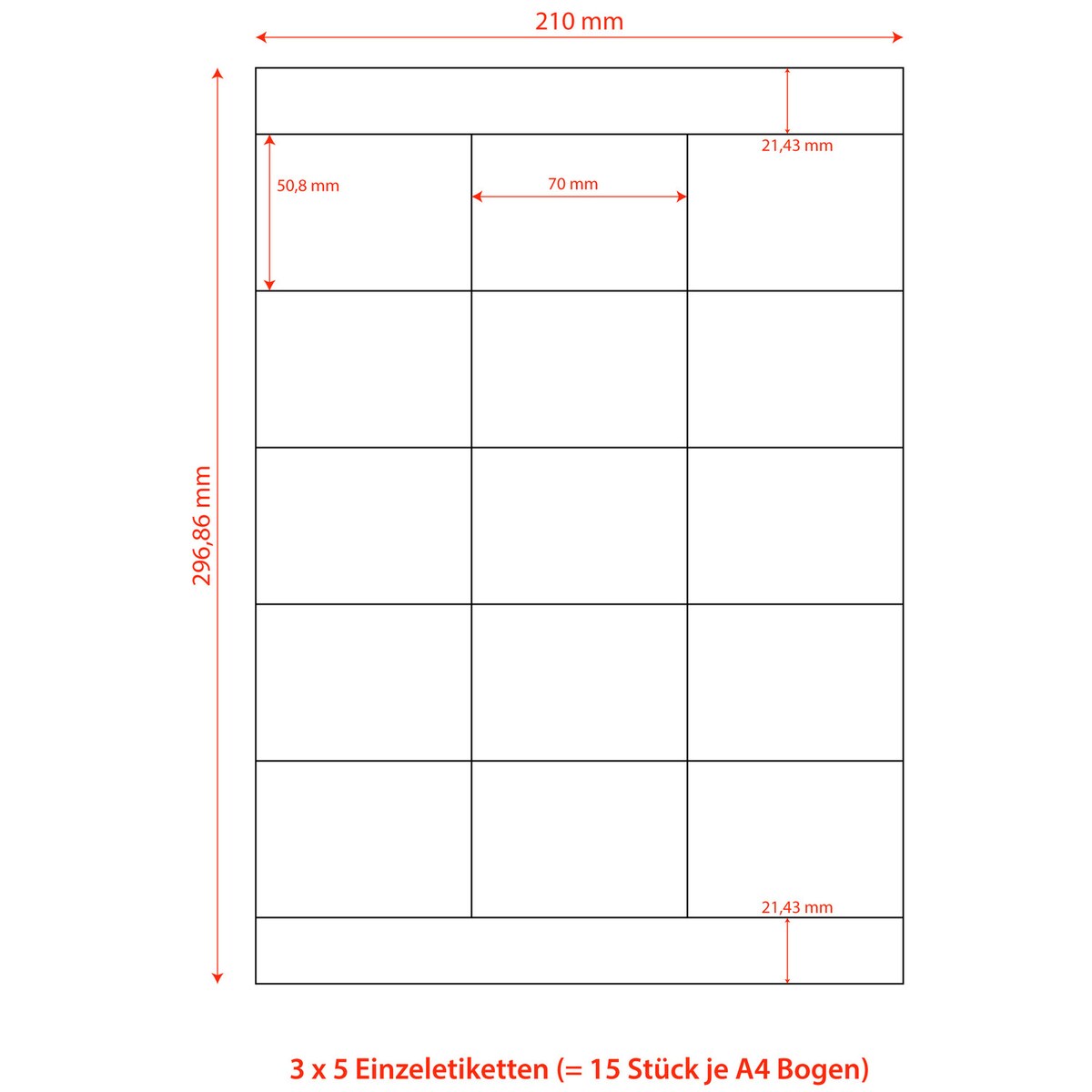 VEPATIM 1500x Etiketten Labels selbstklebend weiß 70 x 50.8mm auf DIN A4