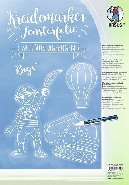 URSUS Kreidemarker-Fensterfolie mit Vorlagebögen 'Boys'