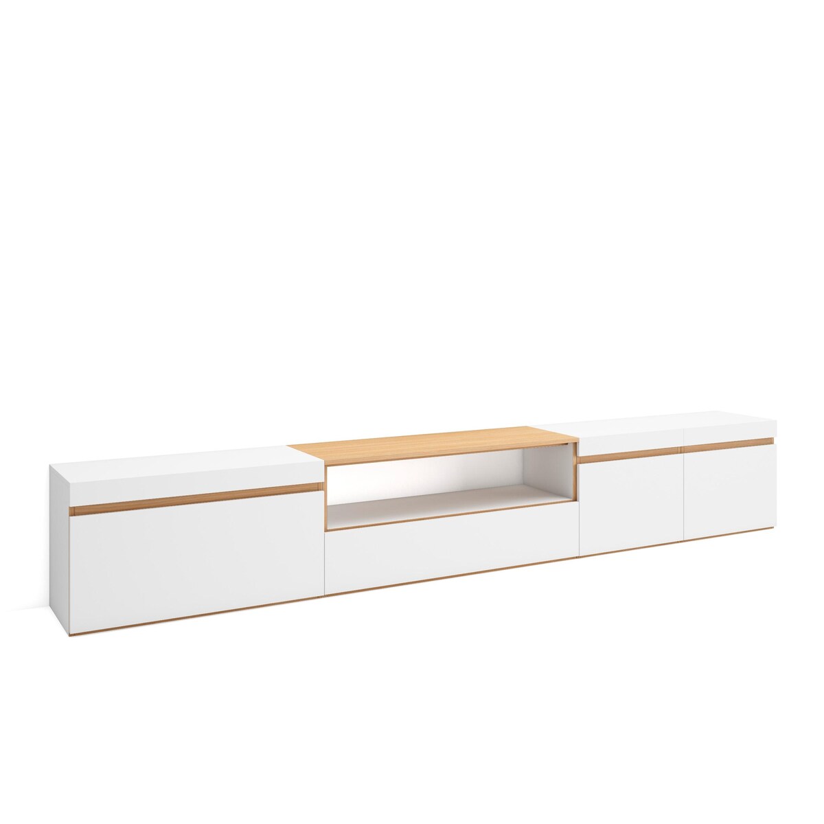 SKRAUT HOME TV-Schrank, Lowboard, 288x45x35 cm, Für großformatiges TV, Fernsehtisch, Weiß und Eiche Soft
