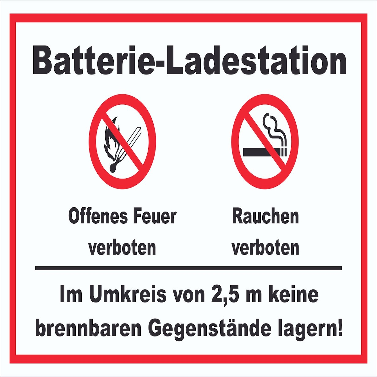 Batterie Ladestation offenes Feuer und rauchen verboten Schild A0 Rückseite selbstklebend