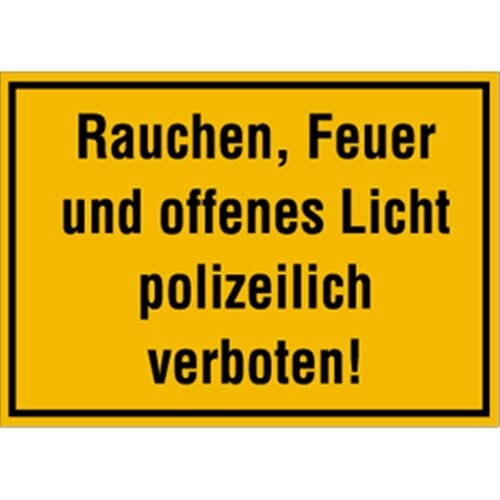 Schild Rauchen, Feuer und offenes Licht polizeilich verboten!, Alu, 350x250 mm