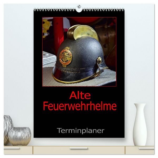 Alte Feuerwehrhelme - Terminplaner (hochwertiger Premium Wandkalender 2026 DIN A2 hoch), Kunstdruck in Hochglanz