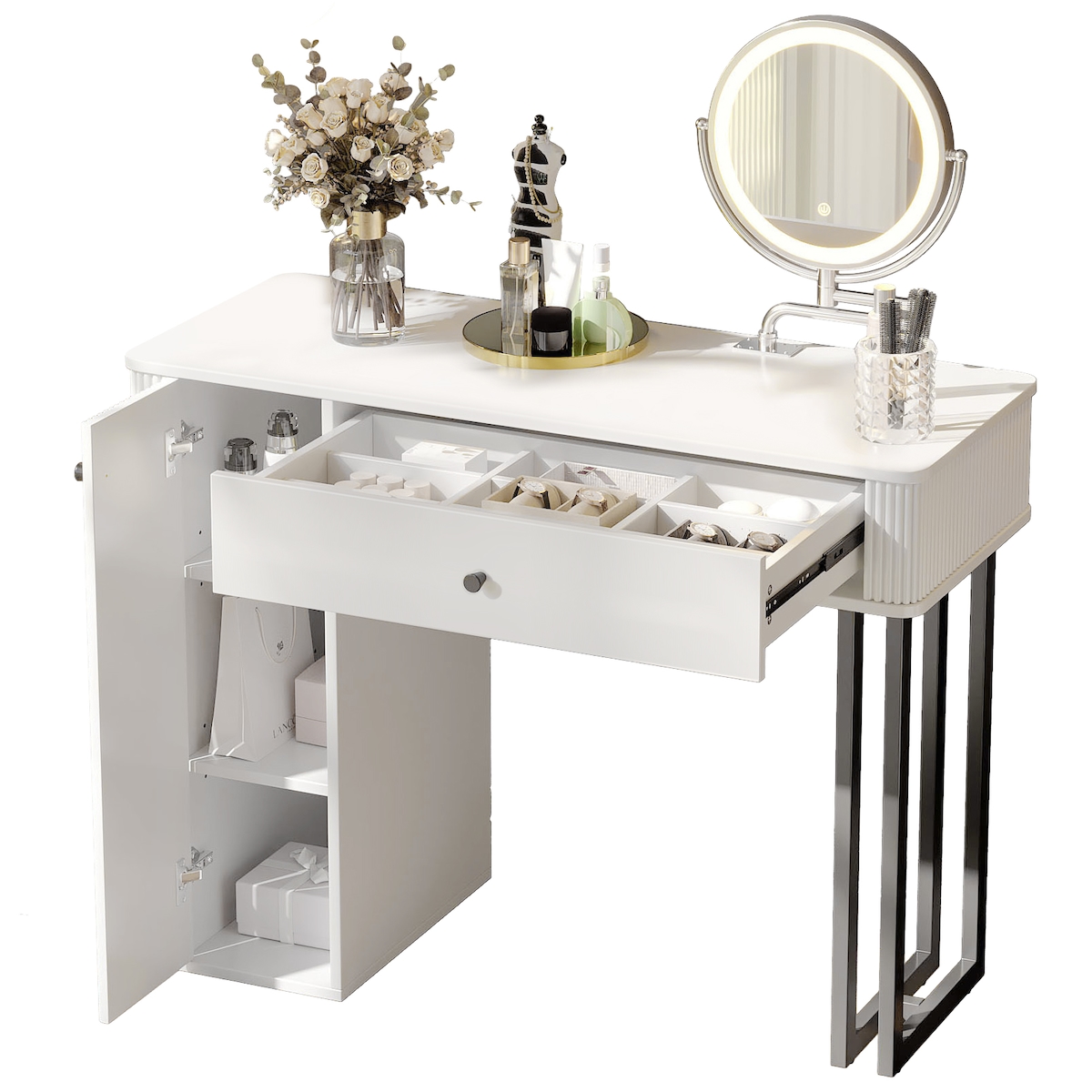 Flieks Schminktisch mit Drehbarem Beistelltisch, Schminkkommode mit Led, Frisierkommode Frisiertisch mit Schubladen und Regal, Weiß