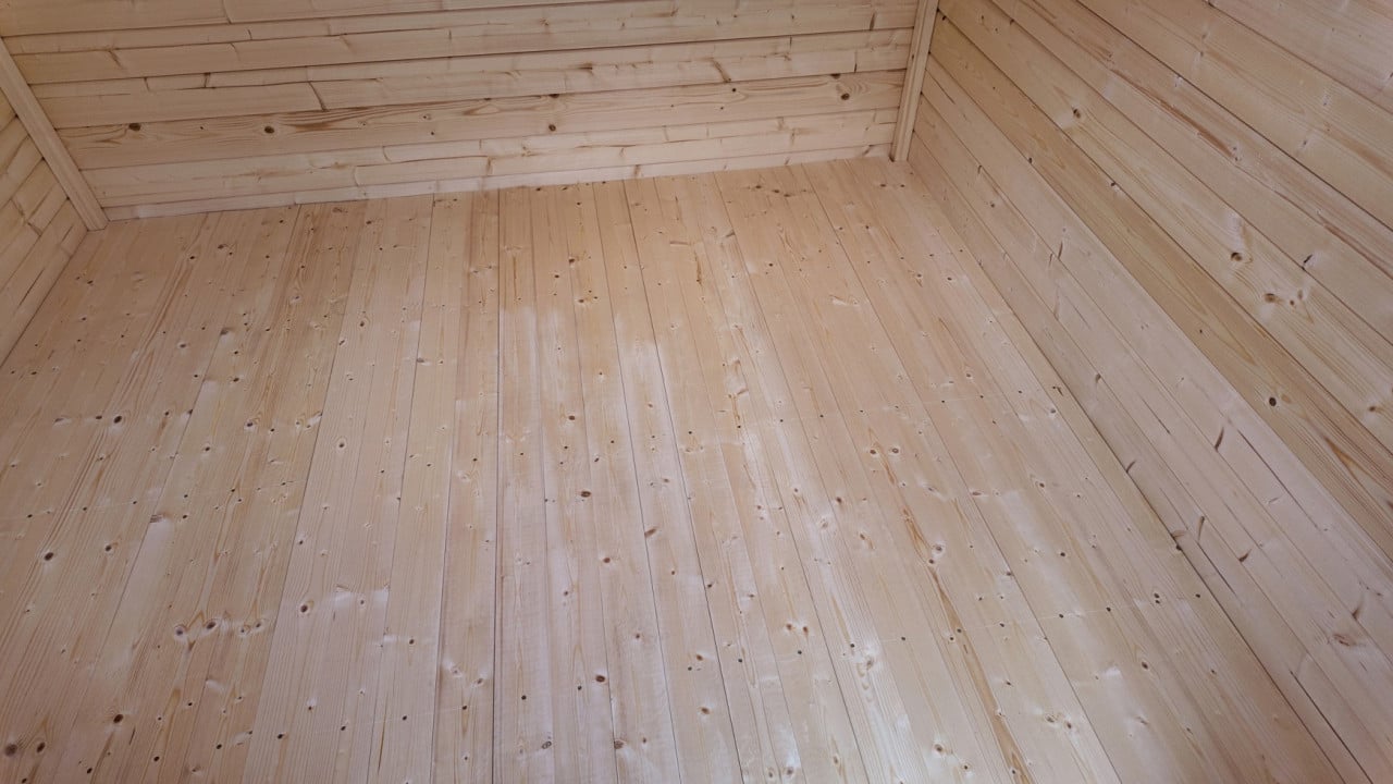 Gartenhaus LISA 19,4 m2; 550x400cm; 44mm Bohlen; ISO, Fußboden, naturbelassen