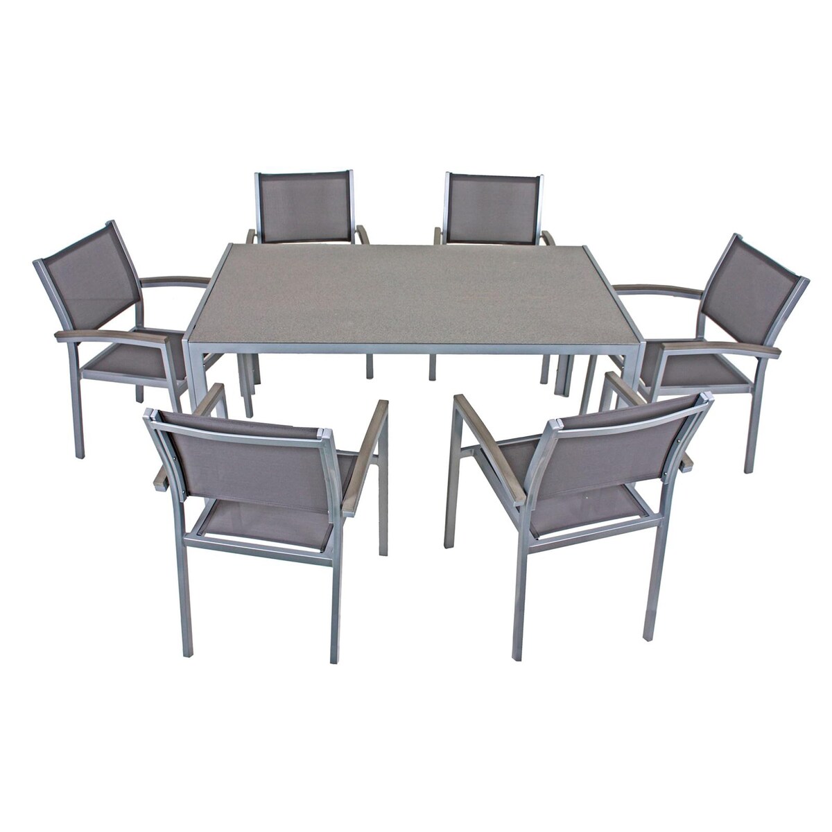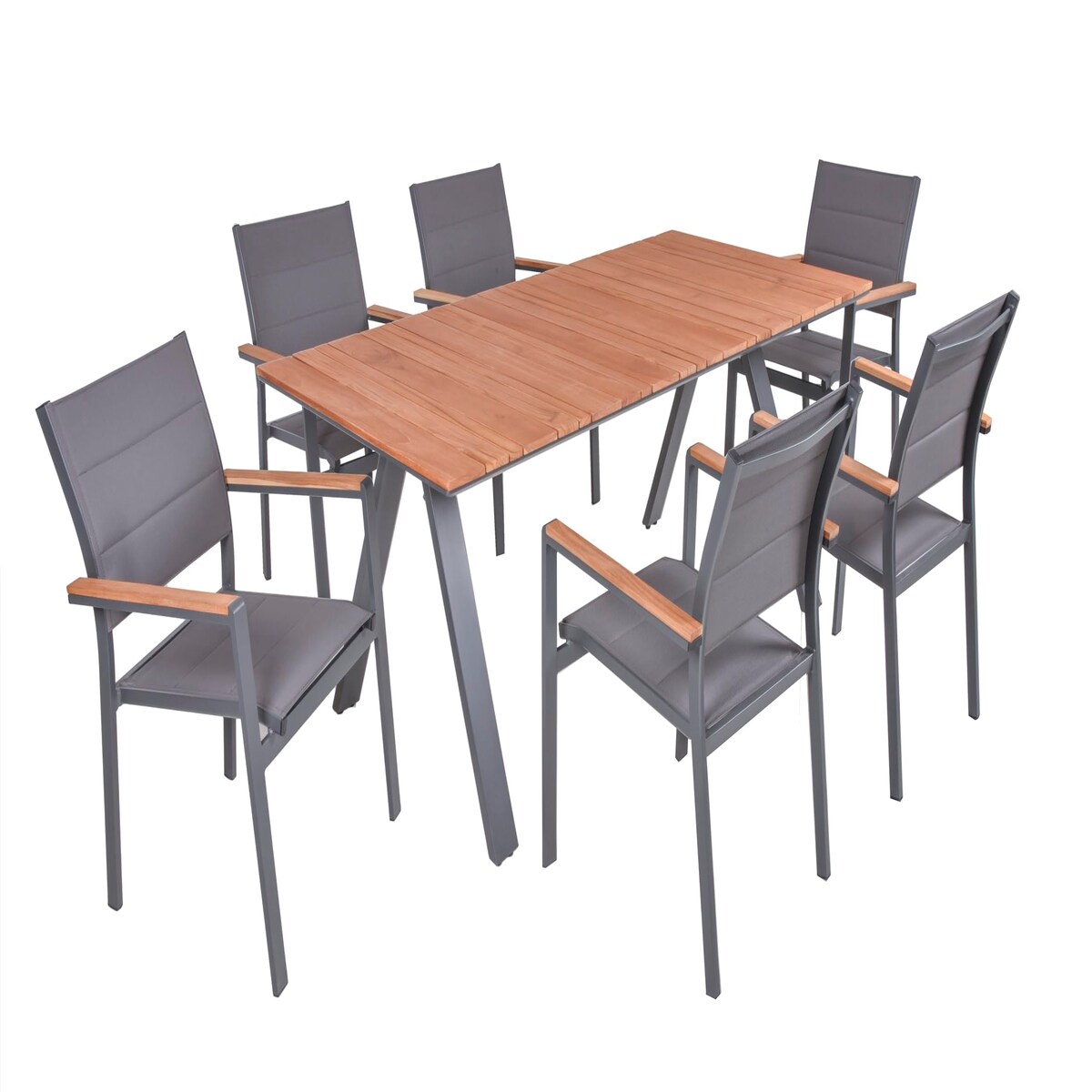 Garten-Sitzgruppe ARNE 7-tlg. - Aluminium, Grau | Gartenmöbel-Set Gartengarnitur Garten-Essgruppe mit Hochlehner-Klappstühlen und Esstisch
