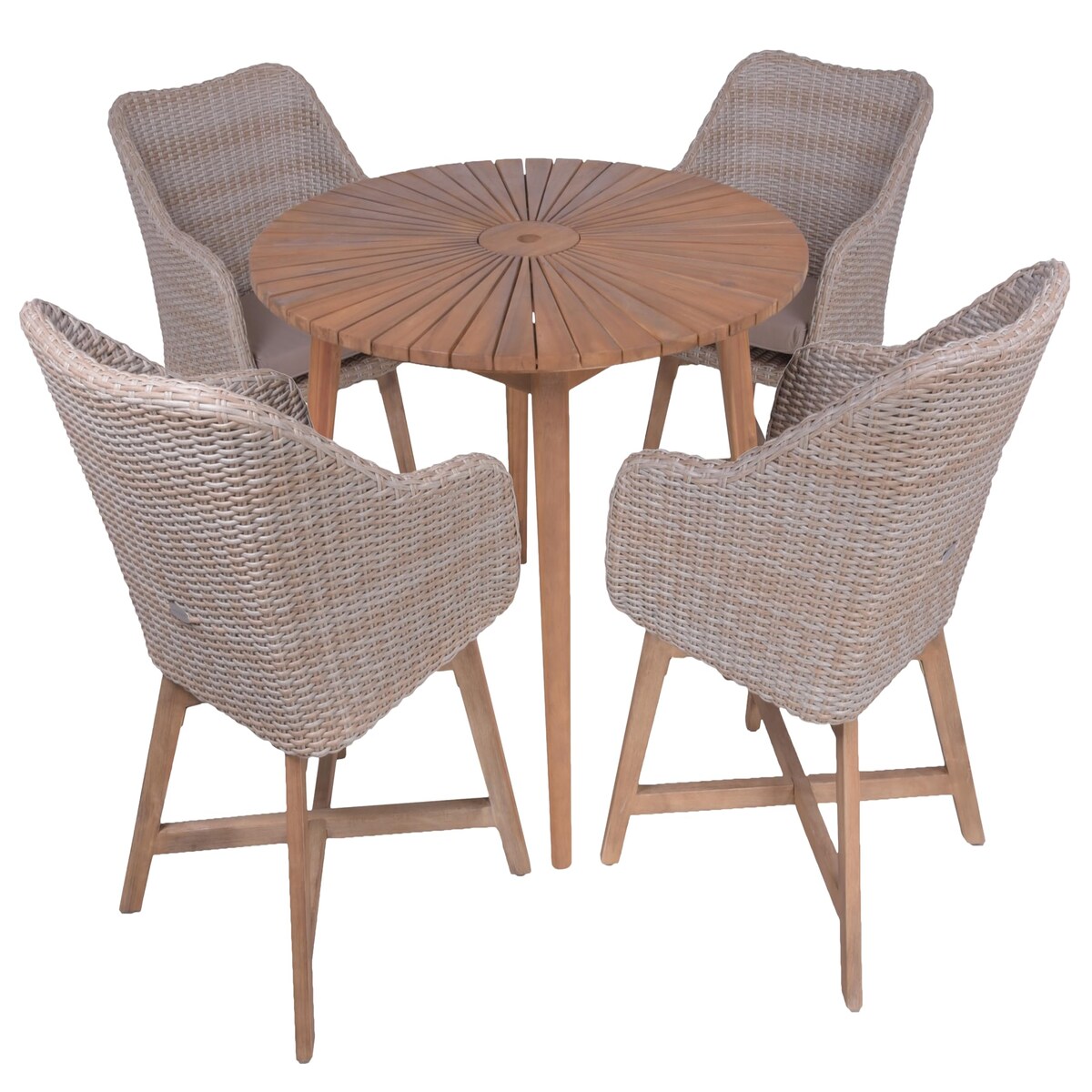 Garten-Sitzgruppe ELODIE 5-tlg. Rattan - Akazie, Grau | Gartenmöbel-Set Gartengarnitur Garten-Essgruppe mit Stühlen und Esstisch