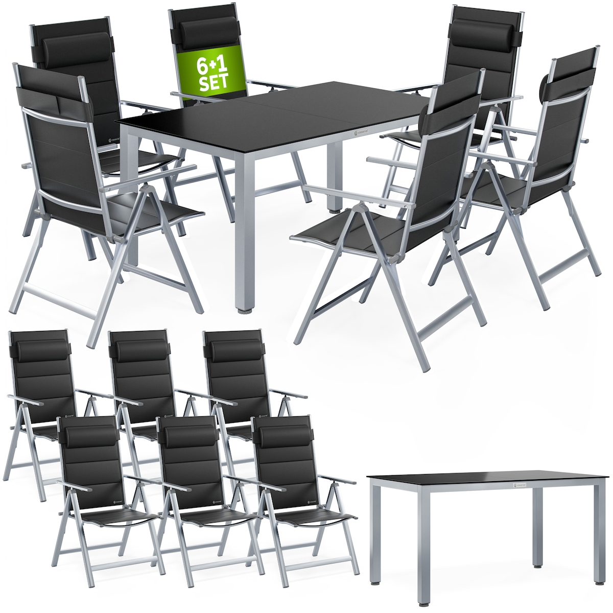 CASARIA Gartenmöbel Set Gartentisch 6 Stühle Silber