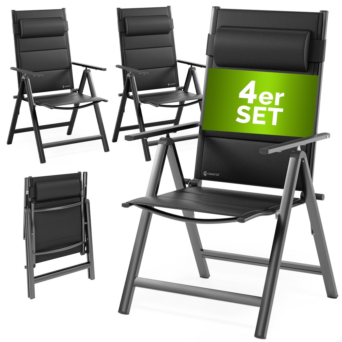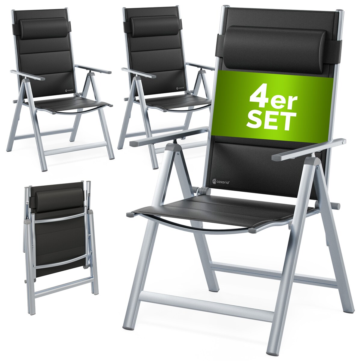 CASARIA Gartenstühle 4er Set Klappbar Gepolstert Alu 8- Fach Verstellbar 120 kg Belastbarkeit Wetterfest Outdoor Balkon Camping Hochlehner Klapp...