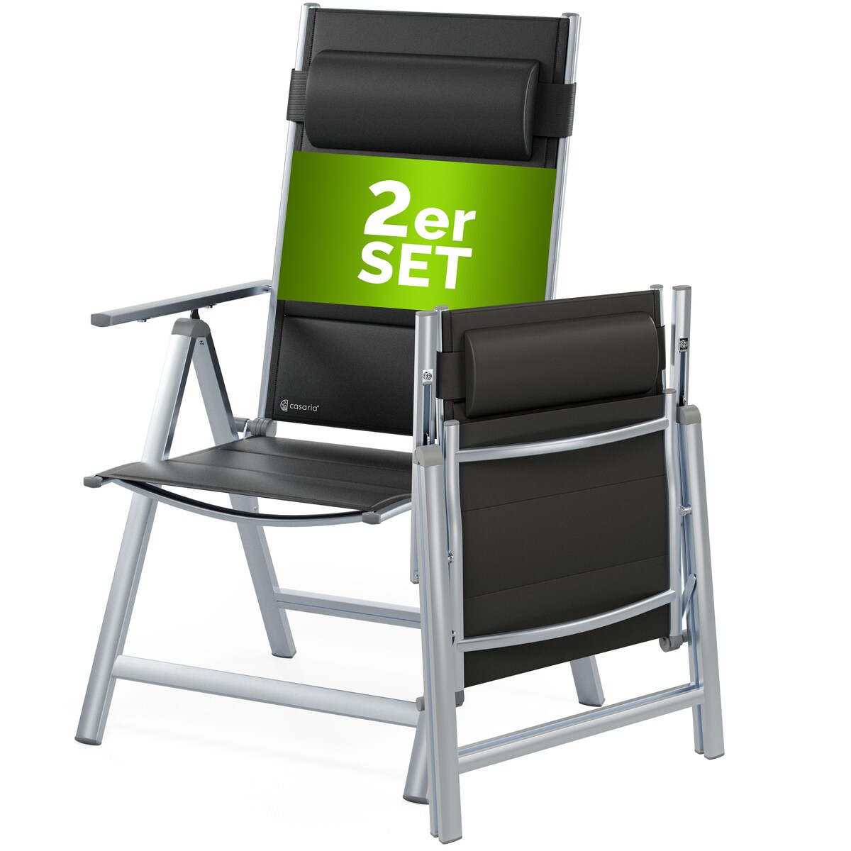 CASARIA Gartenstühle 2er Set Klappbar Gepolstert Alu 8- Fach Verstellbar 120 kg Belastbarkeit Wetterfest Outdoor Balkon Camping Hochlehner Klapp...