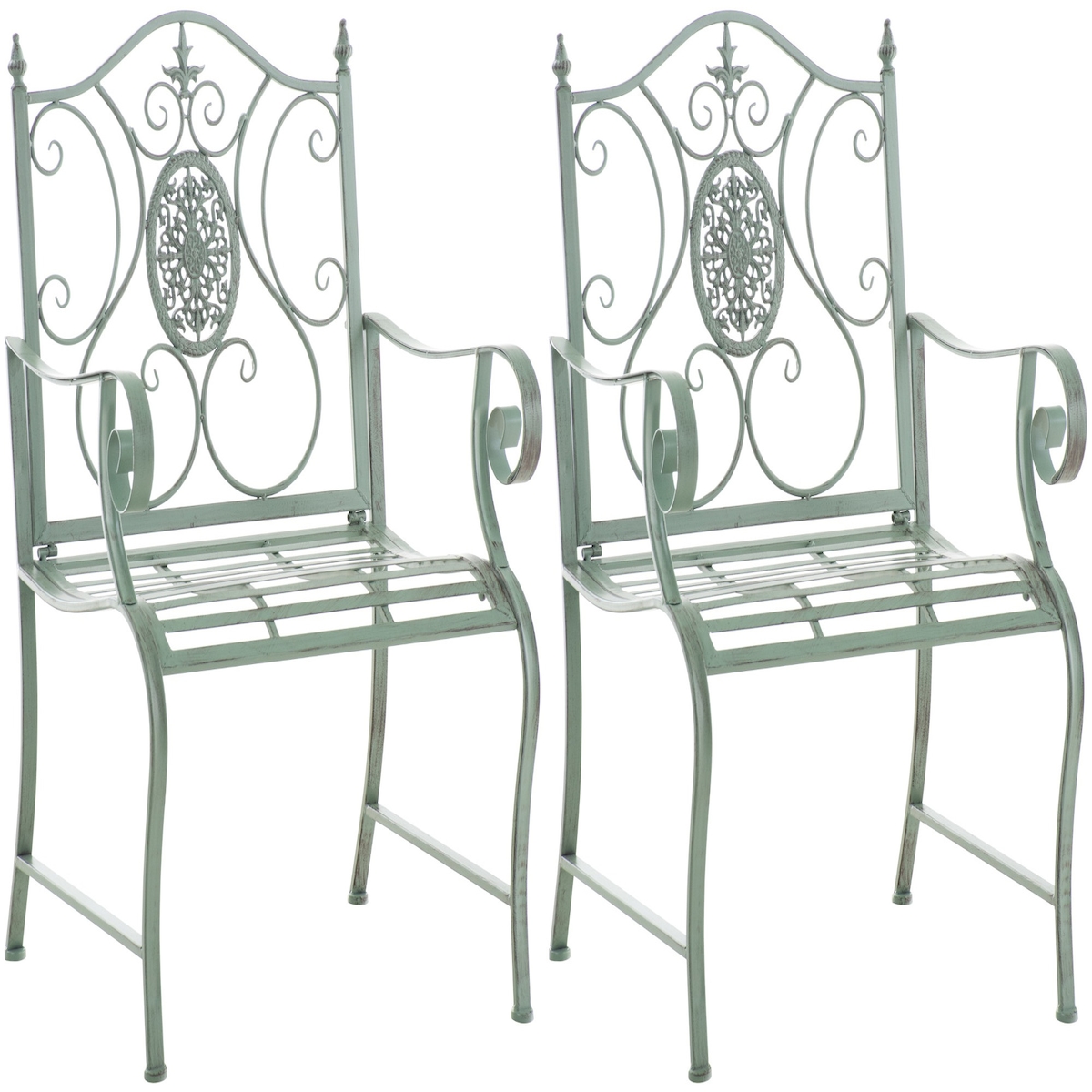 2er Set Gartenstühle AUSTIN - Metall Antik-grün 62x53x94 cm | Gartenstuhl Metall Terrassenstuhl Antik Verzierung Stühle Garten Balkon
