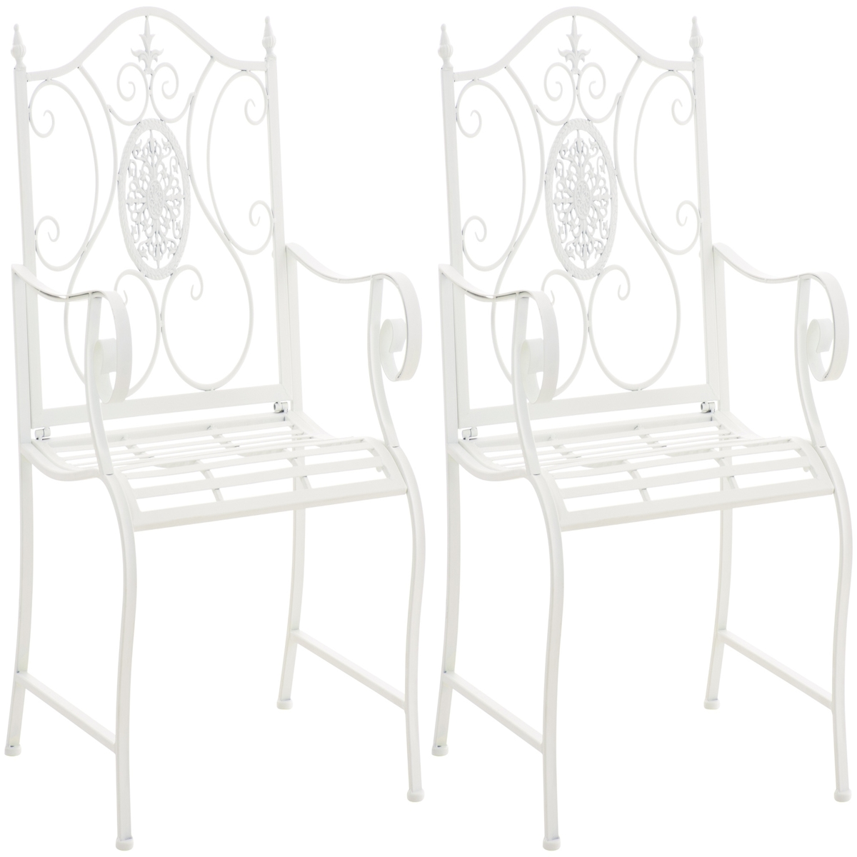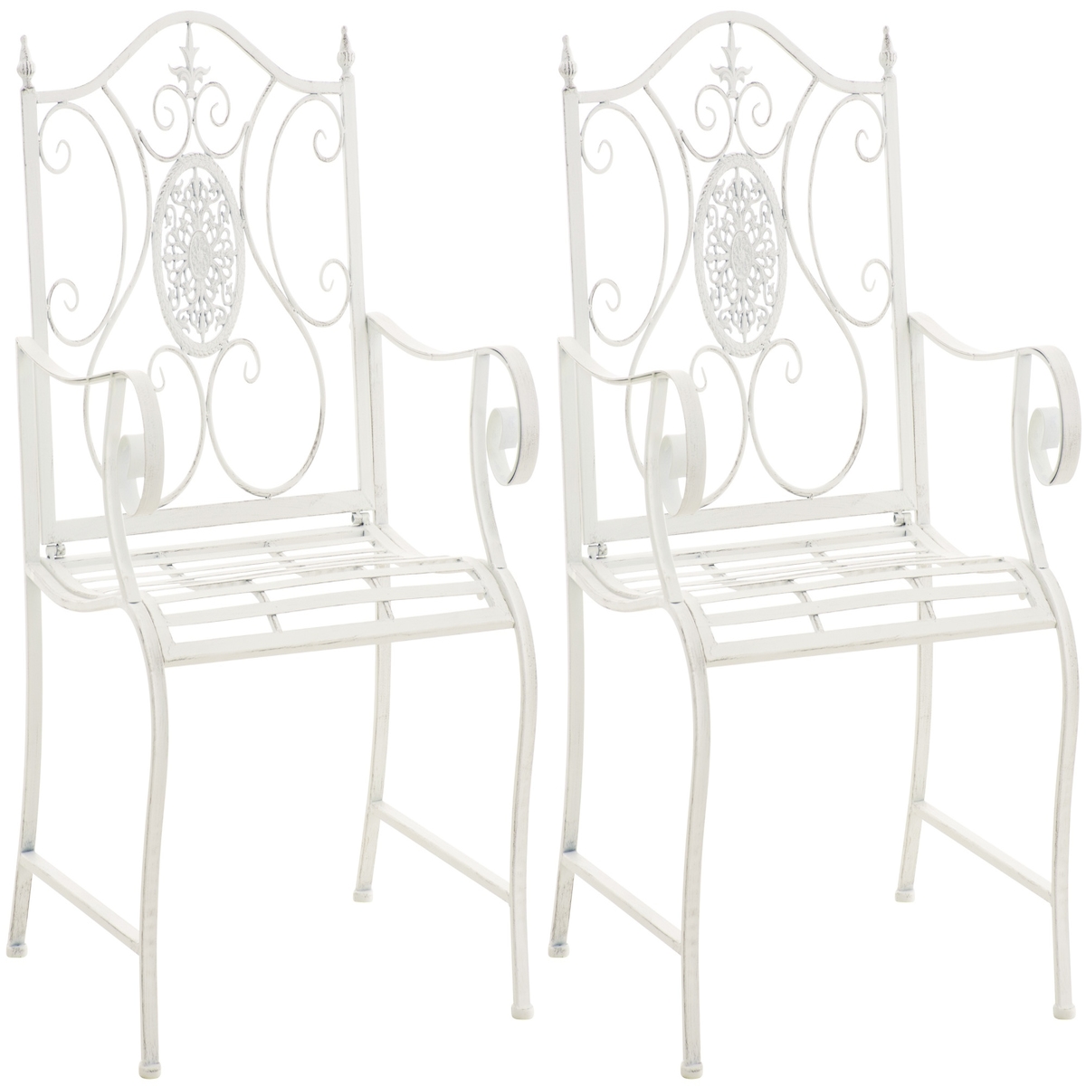 2er Set Gartenstühle AUSTIN - Metall Antik weiß 62x53x94 cm | Gartenstuhl Metall Terrassenstuhl Antik Verzierung Stühle Garten Balkon