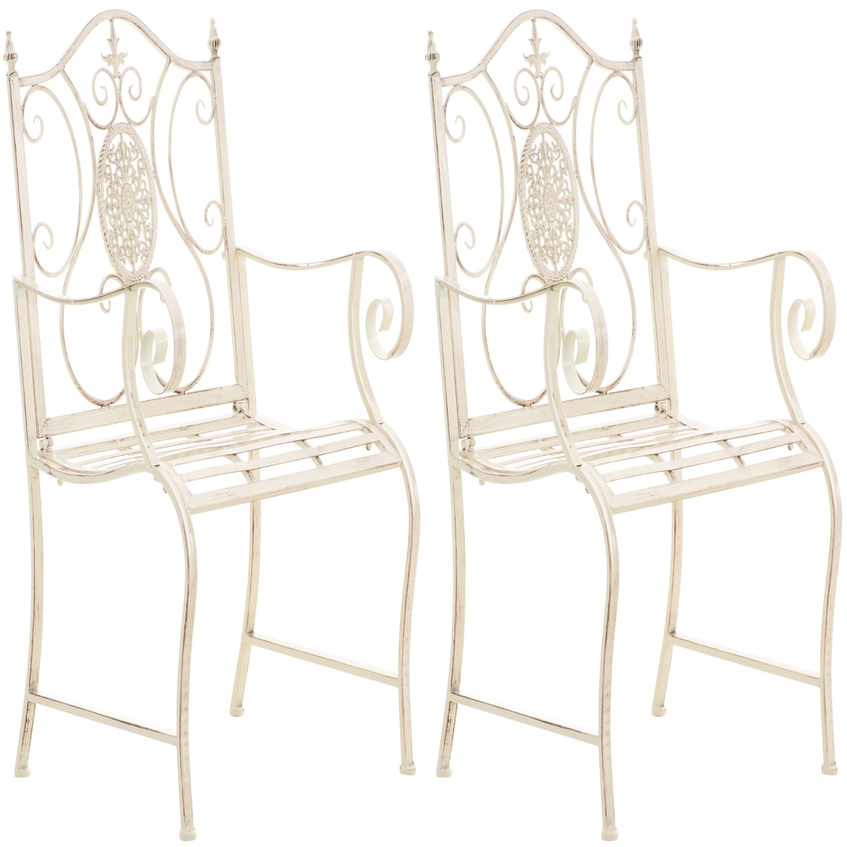 2er Set Gartenstühle AUSTIN - Metall Antik-creme 62x53x94 cm | Gartenstuhl Metall Terrassenstuhl Antik Verzierung Stühle Garten Balkon