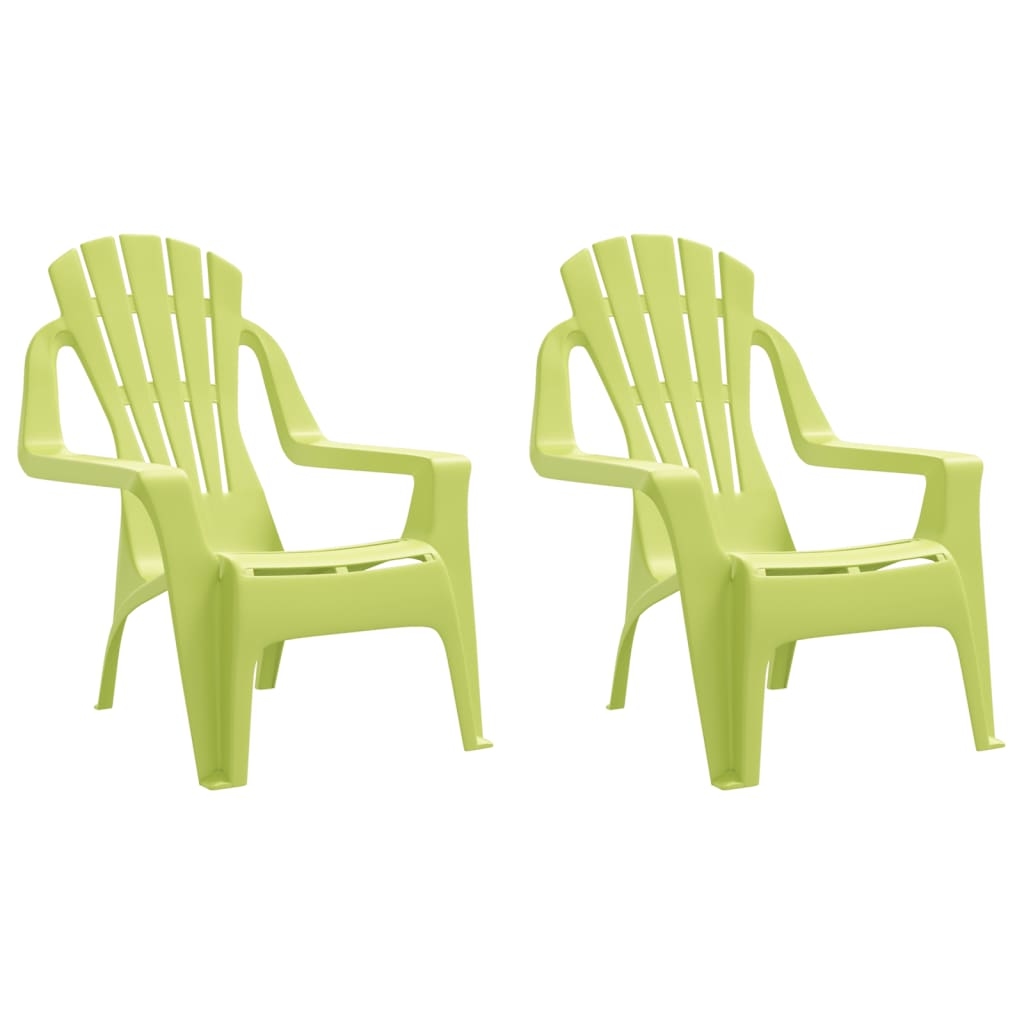 vidaXL Kinder Gartenstühle 2 Stk., Gartenstuhl mit Rückenlehne Armlehnen, Kinder Gartensessel Holzoptik, Gartenmöbel Sessel Stuhl, Grün PP Holzoptik