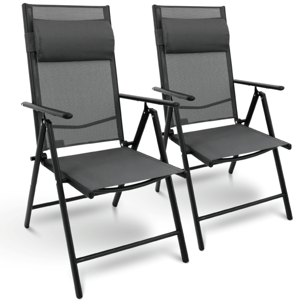 vidaXL Klappbare Gartenstühle 2 Stk. Textilene und Aluminium Schwarz - Gartenstuhl - Gartenstühle - Outdoor-Stuhl - Outdoor-Stühle