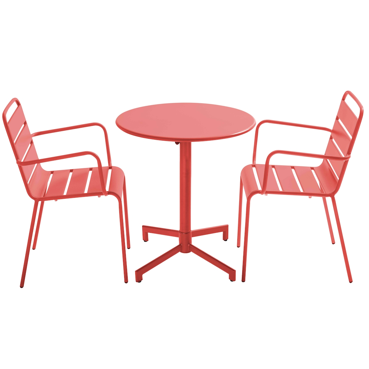 Oviala Business Gartentisch und 2 Sessel, Set aus rotem Metall