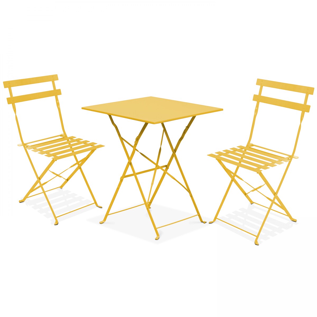 Oviala Business Gartentisch und 2 Stühle Stahl gelb - Oviala