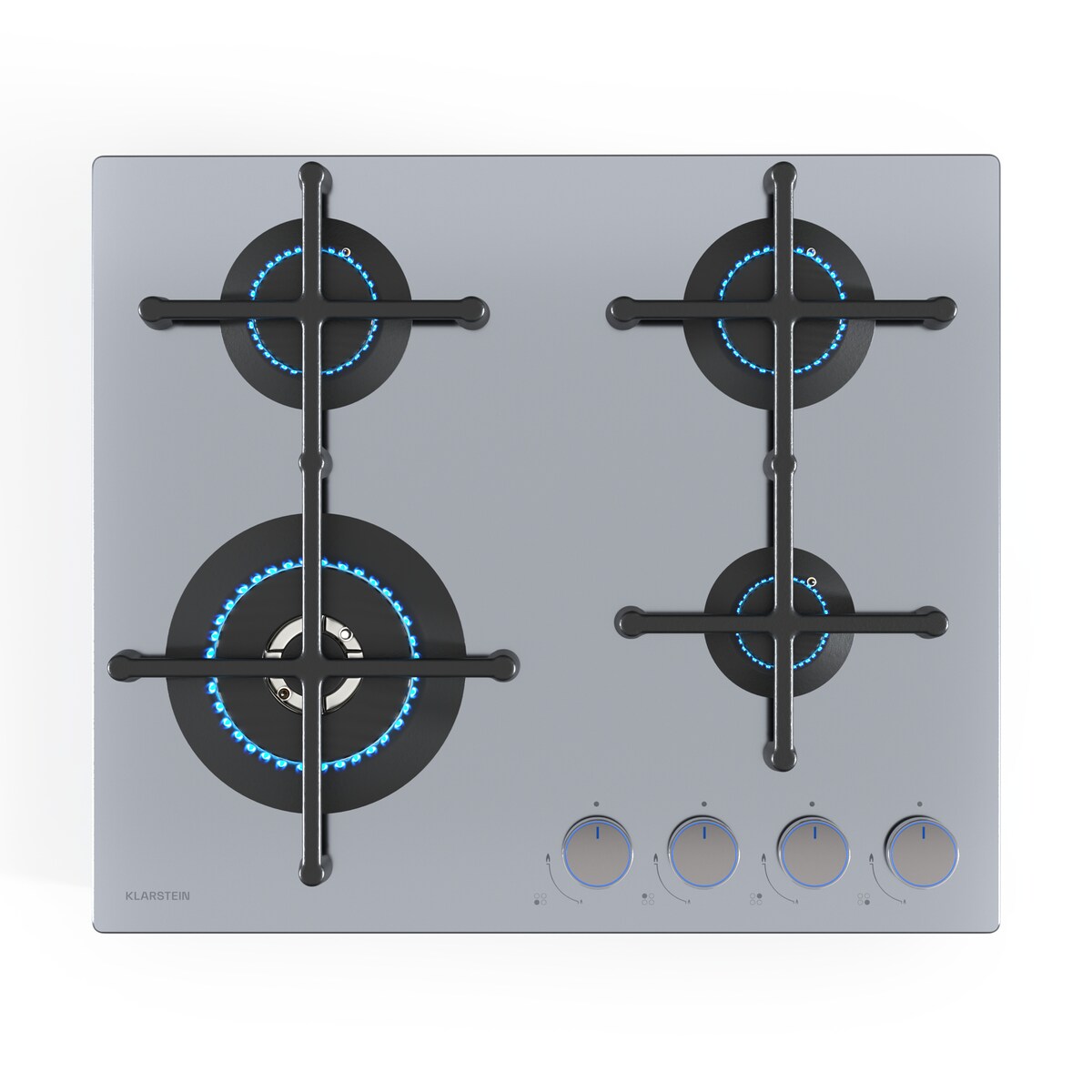 Klarstein Illuminosa 4 Gaskochfeld 4-flammig Sabaf-Brenner Edelstahl Silber