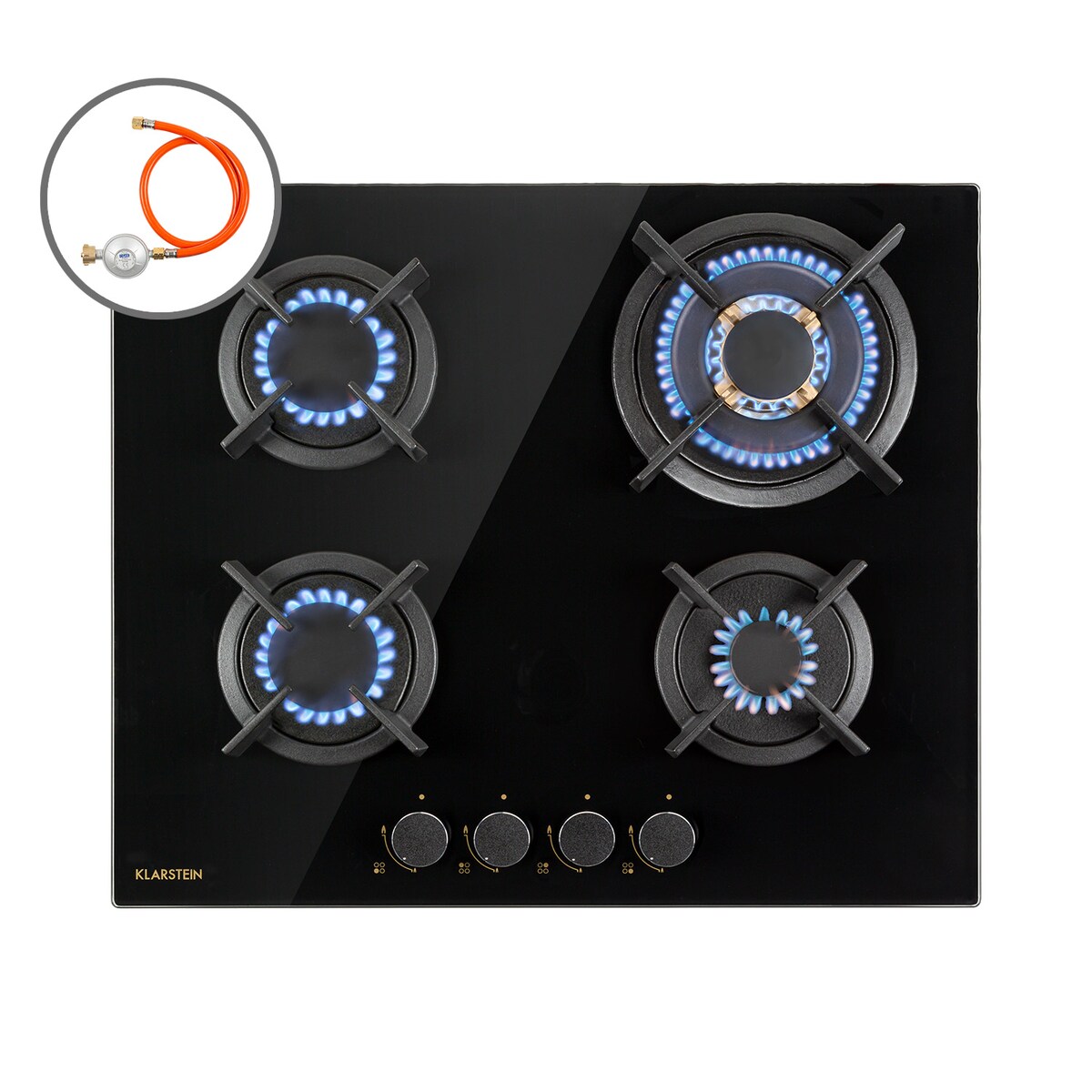 Klarstein Goldflame 4 Gaskochfeld 4-flammig Messing-Brenner Glaskeramik schwarz Schwarz