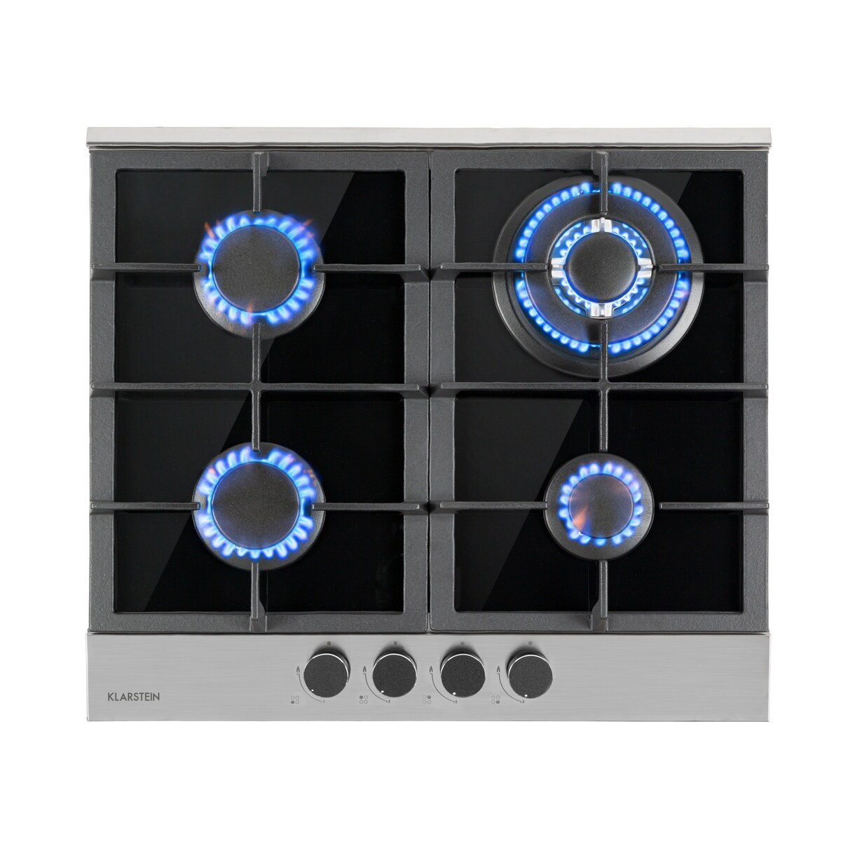 Klarstein Alchemist 4 Zonen Gaskochfeld Aluminium-Brenner Glaskeramik schwarz Silber