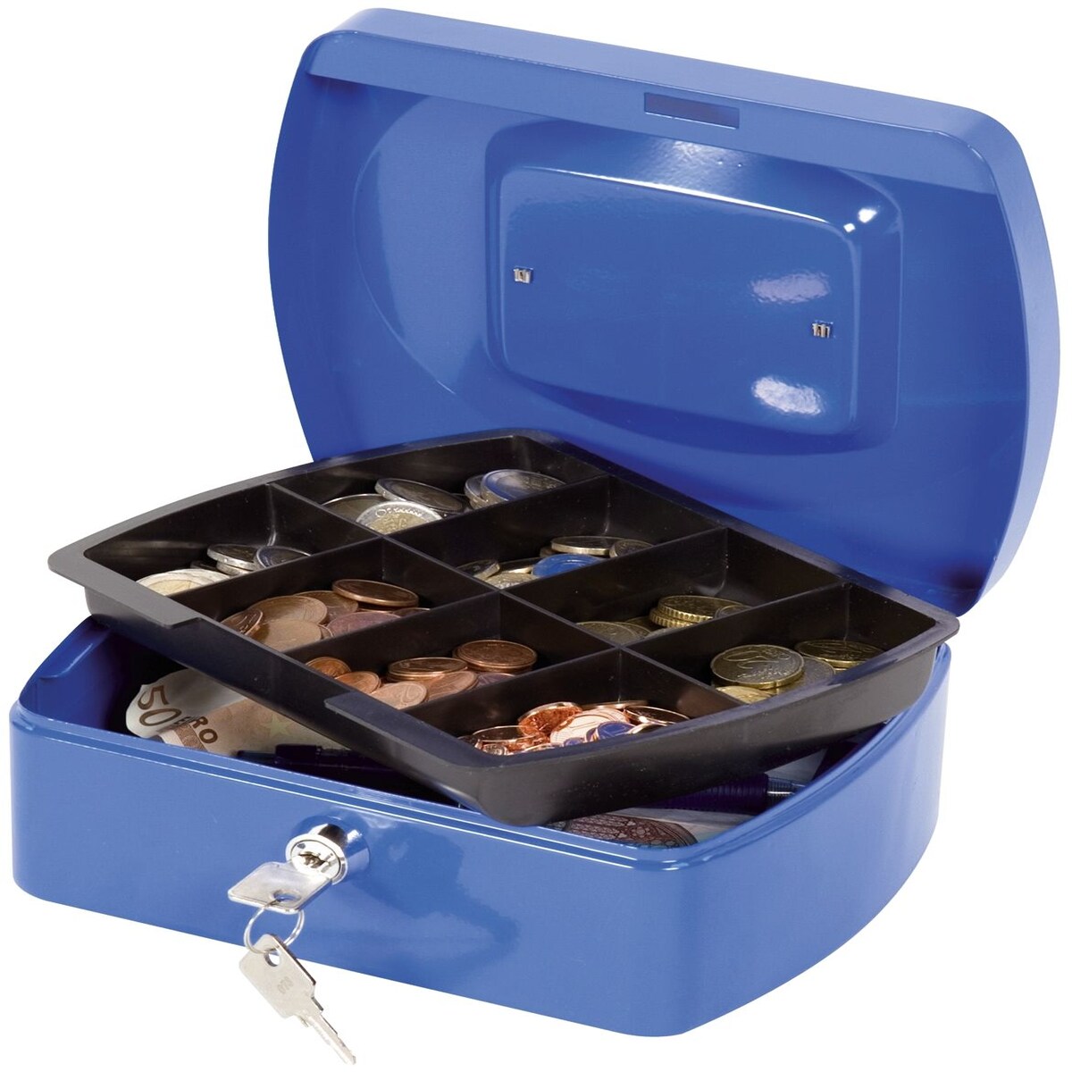 ARREGUI Elegant C9235 Geldkassette aus Stahl | 25 cm breit | Abschließbare Kasse mit Geldeinsatz | Geldkassette mit Schlüssel und Münzeinsatz | blau