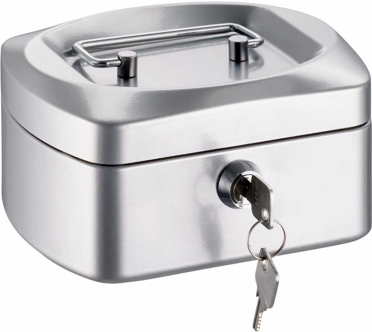 Geldkassette abschließbar mit herausnehmbaren Münzeinsatz, HMF 10130-09, Silber