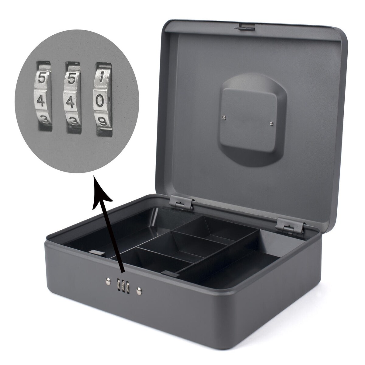 PAVO Geldkassette mit Zahlenschloss 300 mm herausnehmbare Münzfächer dunkelgrau