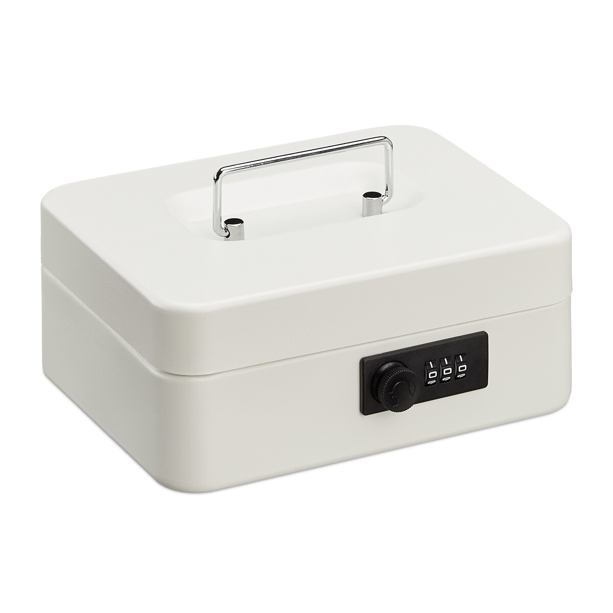Relaxdays Geldkassette, 3-stellige Zahlenkombination, Münzeinsatz, Geldkasten Eisen, Kasse, HBT 8,5 x 20 x 17 cm, weiß