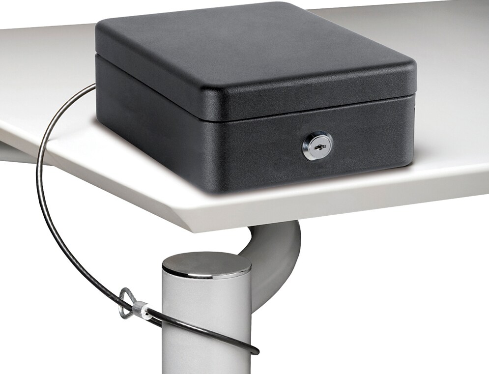 ARREGUI Private C9467 Geldkassette mit Sicherungskabel aus Stahl und Schlüsselschloss | Geldbox mit Kabel | Abschließbare Kasse | 15 cm breit