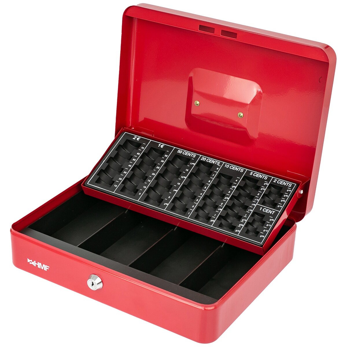 HMF 4215-03 Geldkassette mit Münzzählbrett, 30,5 x 24 x 8,5 cm, Rot