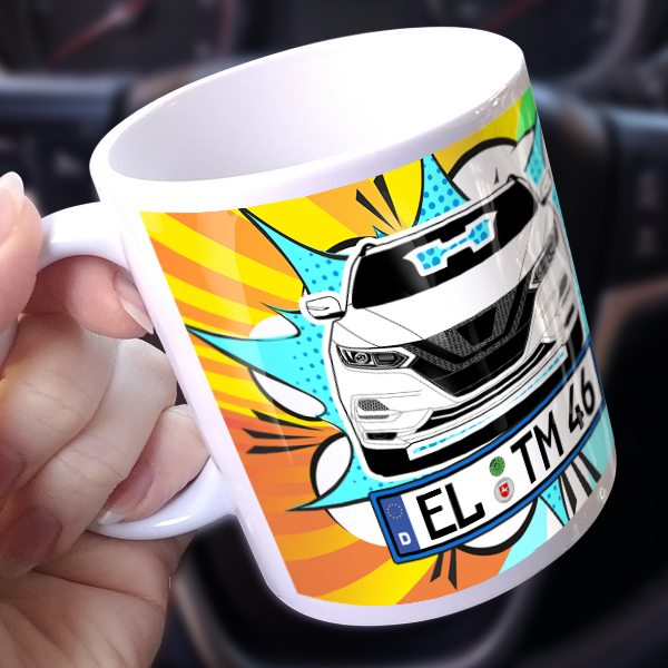 Personalisierte Tasse als Geschenk für Männer: lass sein Nummernschild, Auto bzw. Wunschfoto abbilden. Geschenkideen für Männer