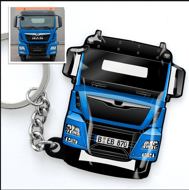 LKW-Schlüsselanhänger personalisiert: mit deinem Modell u. Kennzeichen! Besondere Geschenkideen für Männer, teste die Vorschau!