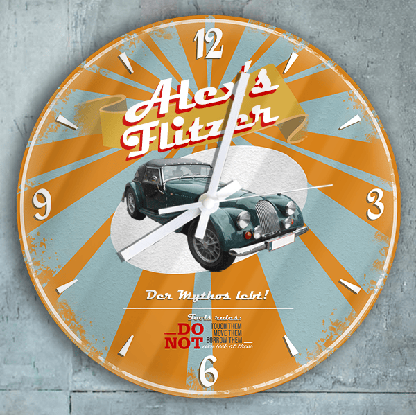Personalisierter Wanduhr als Geschenk für Männer: lass sein Nummernschild, Auto bzw. Wunschfoto abbilden. Geschenkideen für Männer