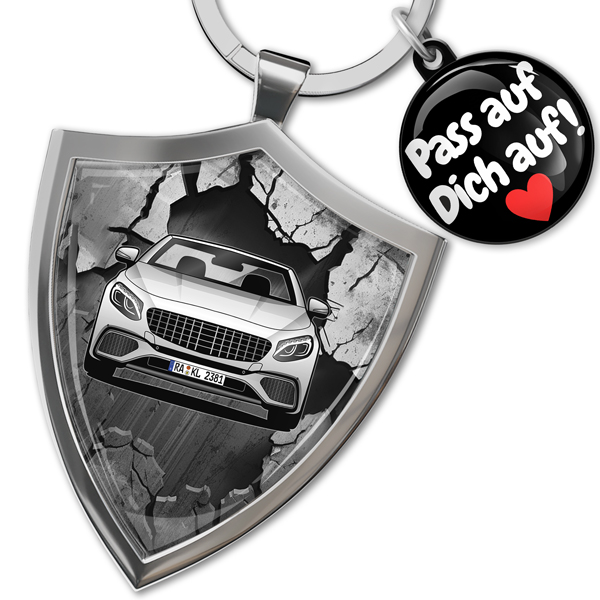 Individueller Schlüsselanhänger-Herz in Form deines Autos, mit deinem Kennzeichen! Besondere Geschenkideen für Männer: Größe M, L. - auto4style