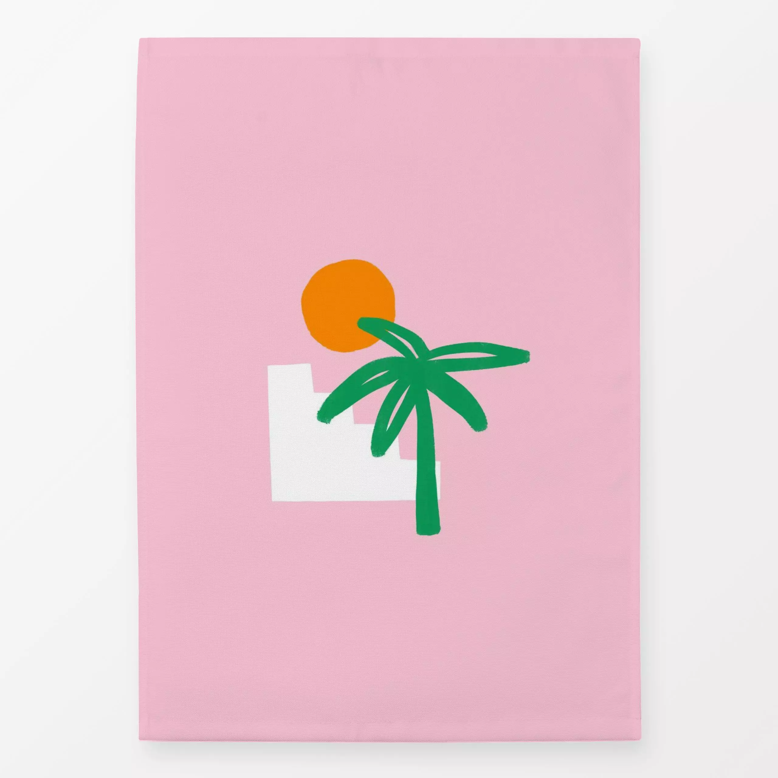 Geschirrtücher Palme mit Treppe Abstrakt - Sommer, Pflanzen & Botanik - von „Maren Gross "; abstrakt, Palmen, Sonnenaufgang,...